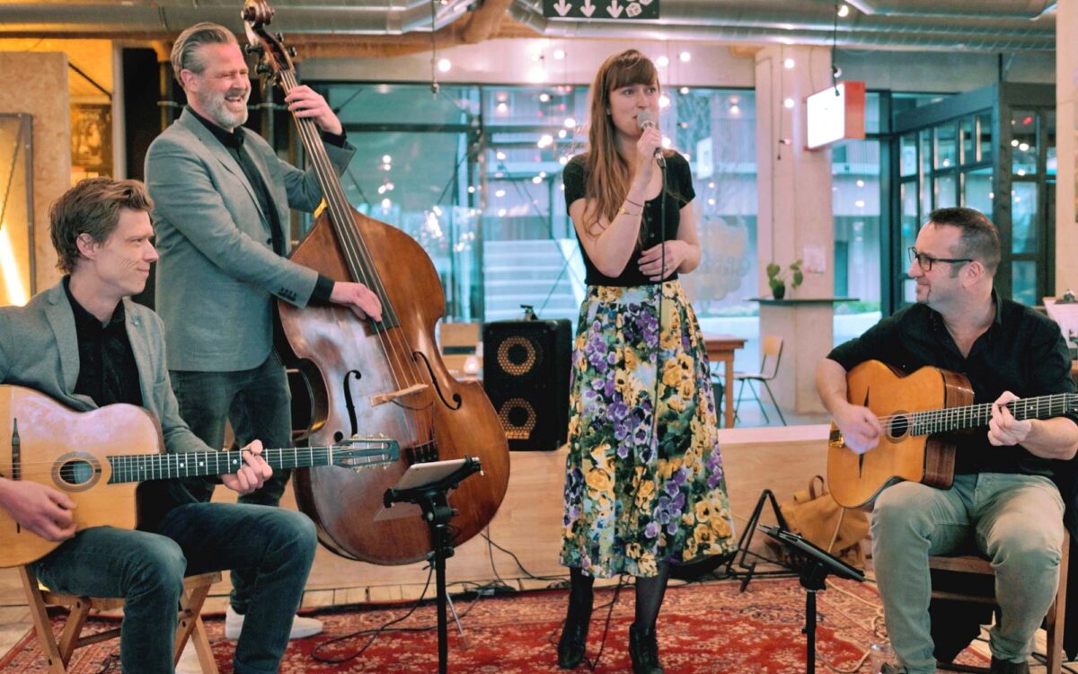Akoestisch Jazzkwartet Vintish speelt American en Latin Songbook favorieten in de door Django Reinhardt ontwikkelde Gypsy Jazz stijl. Vrolijke swing ritmes met de onmiskenbare ‘La Pompe’ slagtechniek voeren de boventoon en worden afgewisseld met bevlogen bossa’s, rhumba’s en bolero’s. Op het repertoire staan naast vintage jazzstandards bekend gemaakt door zangeressen als Ella Fitzgerald, Nina Simone en Billie Holiday, ook modernere nummers zoals Van Morrison’s Moondance, Another Star van Stevie Wonder, Spooky van Dusty Springfield en Feelin’ Good geïnspireerd op de uitvoering van Frank Cunnimundo. Om die reden veranderde de aanvankelijk aangenomen naam ‘The Vintage Jazz Quartet’ in Vintish. Het in 2022 opgerichte kwartet bestaat naast zangeres Annemieke Peene uit contrabassist Roeland Terhuizen en de gitaristen Carlo Gentenaar en Mick Verweij.